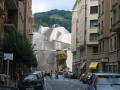 Robs outside the Guggenheim Museum, Bilbao. A spectacular building but not opressive at all, lots of visitors hanging around, sitting and chatting. |